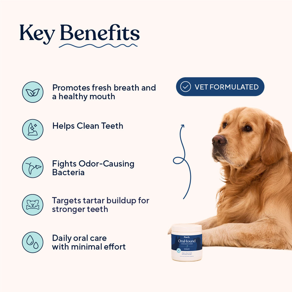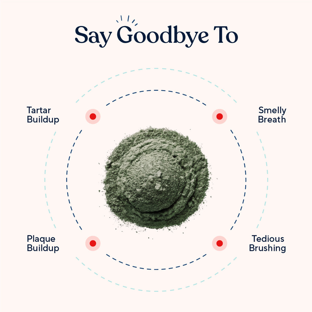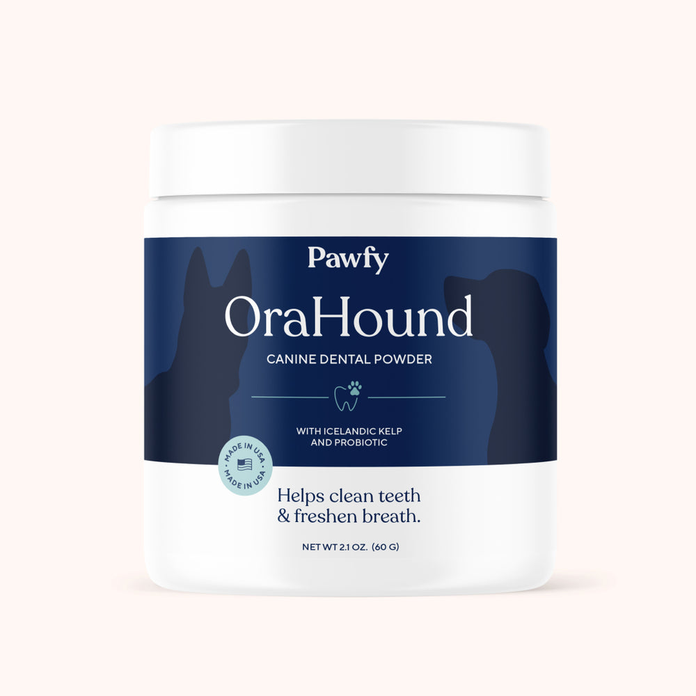 Orahound Dental Powder takes all the hassle and stress out of keeping your dog’s teeth clean. Simply add a scoop to your dog’s food bowl each day and your job is done.