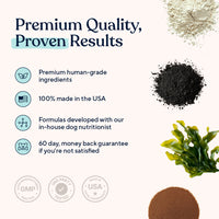The ingredient list is packed with a unique combination of “dental defenders” that immediately go to work inside your dog’s mouth. Every bite contains the perfect amount of kelp, charcoal, zeolite, and antioxidants to combat tartar and plaque. A powerful blend of probiotics to promote a healthy oral microbiome. Plus, the groundbreaking postbiotic from Epicor® Pets which supports clean teeth and fresh breath by reducing odor-causing bacteria.